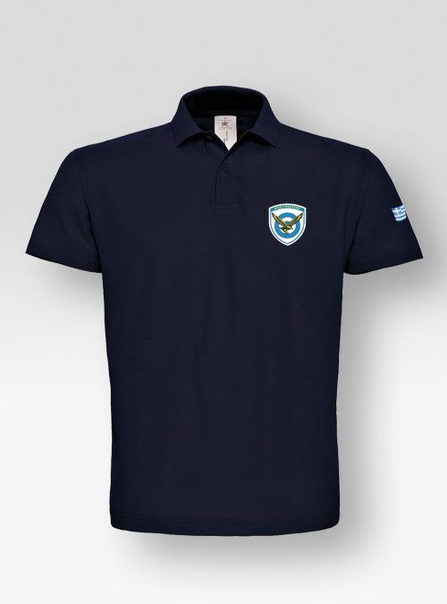 Μπλούζα κοντό μανίκι  ΠΟΛΟ με κέντημα ΑεροπορίαΜπλουζάκι πόλο με γιακά και τρία κουμπιά κοντό μανίκι, βαμβακερό 100% σε χρώματα: μπλε, μαύρο. Διαθέτει κεντημένα τα εμβλήματα